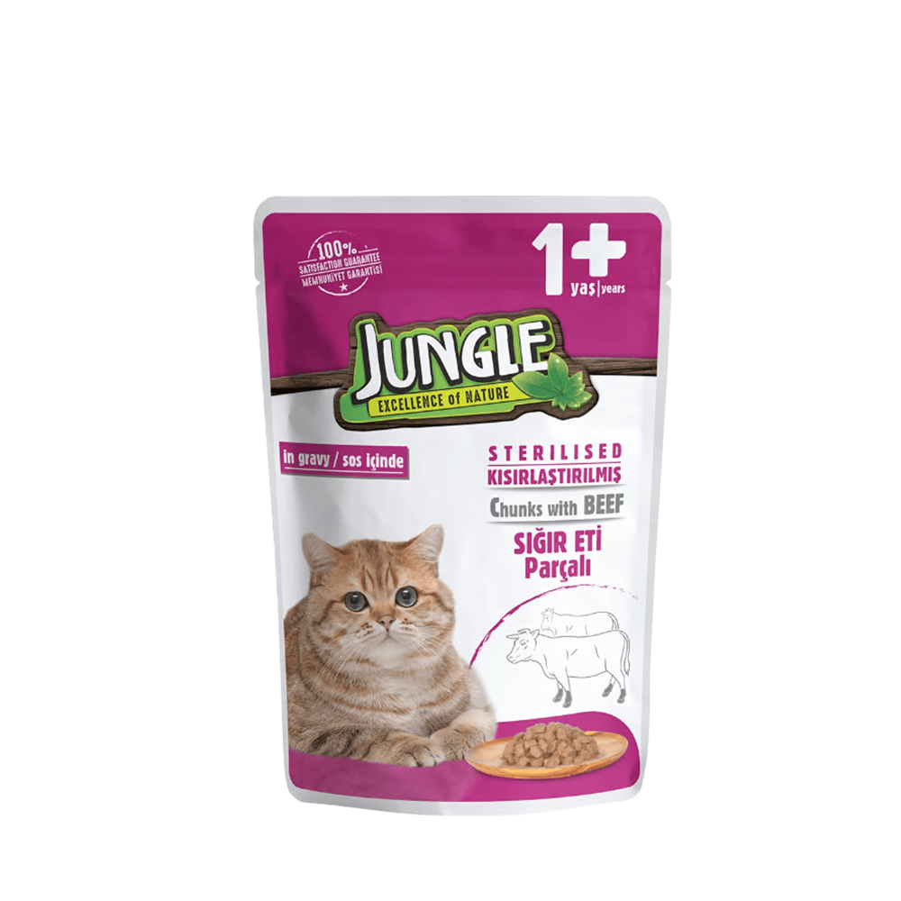 اظرف جنغل ويت فود للقطط المعقمة باللحم 100 جرام