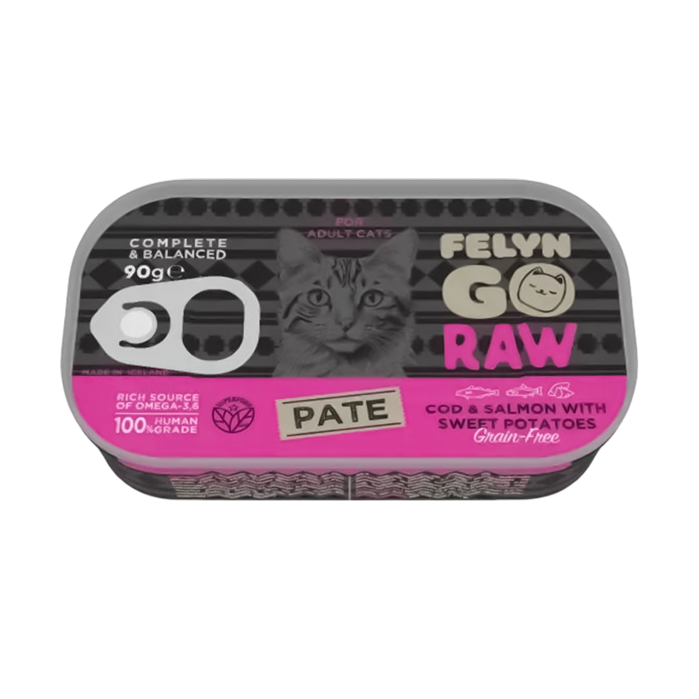 فيلاين قو باتية بالسلمون وسمكة القد والسبانخ للقطط البالغة 90 جرام