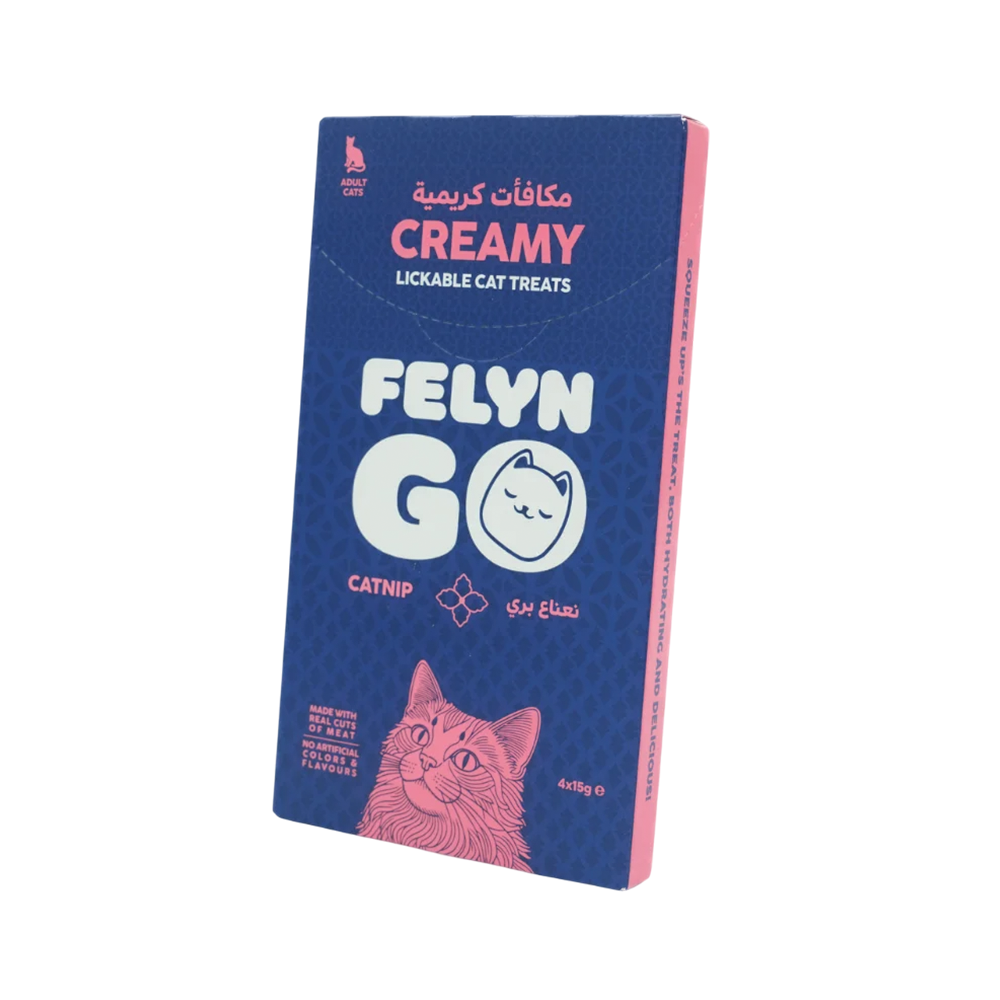 دلل قطك بمذاق لذيذ وصحي مع فيلين قو كريم مكافآت قابلة للعق بنكهة النعناع البري، مثالي لعشاق مكافآت القطط اللينة والسهلة التقديم. يمكن تقديمه مباشرة من الكيس أو إضافته إلى الطعام الرطب أو الطعام الجاف لإضافة نكهة غنية وزيادة الشهية. غني بالبروتين لدعم صحة العضلات والطاقة، مناسب لجميع الأعمار.