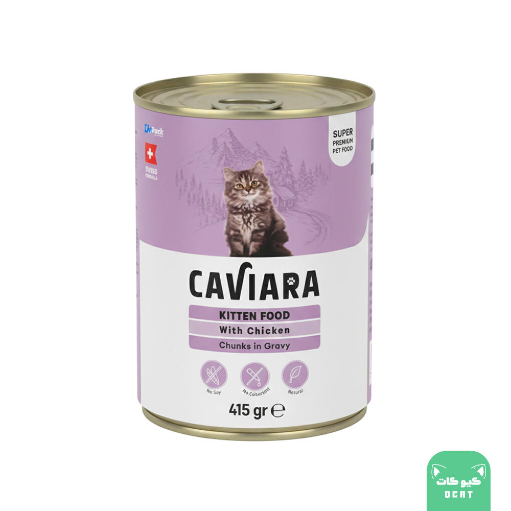 كافيارا معلبات قطع الدجاج في المرق للقطط الصغيرة 415 جرام