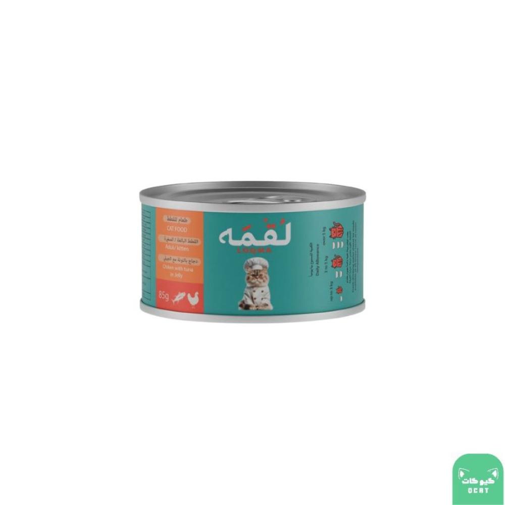 لقمة للقطط البالغة والصغيرة دجاج مع التونة في الجيلي- 85 جرام