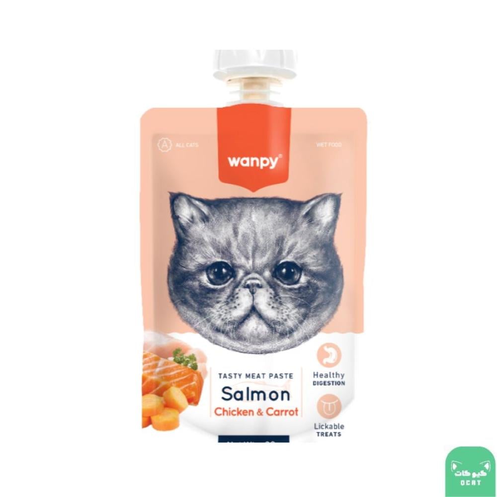 وانبي معجون اللحم الذيذ للقطط بنكهة السالمون و الدجاج و الجزر 90 جرام
